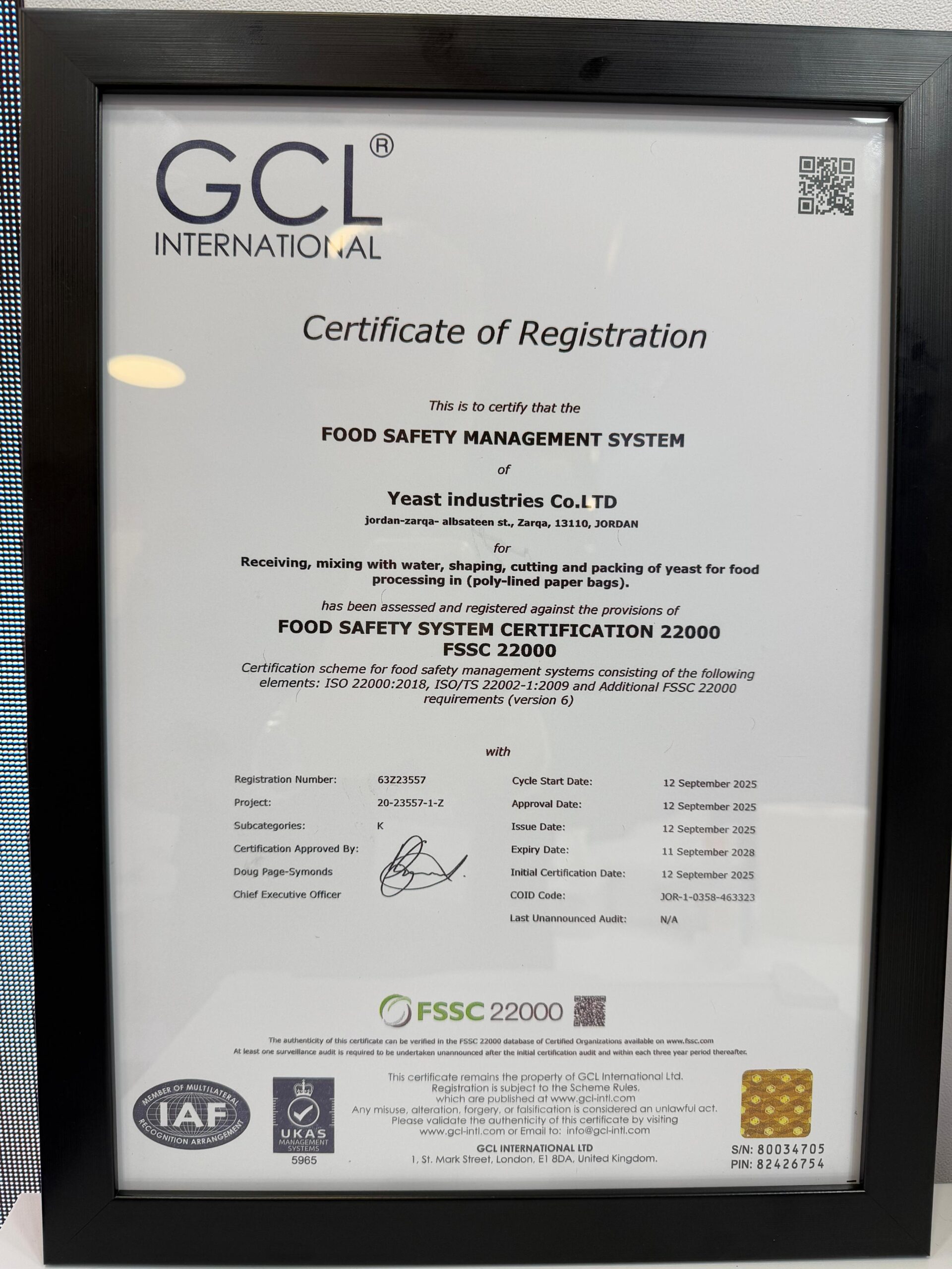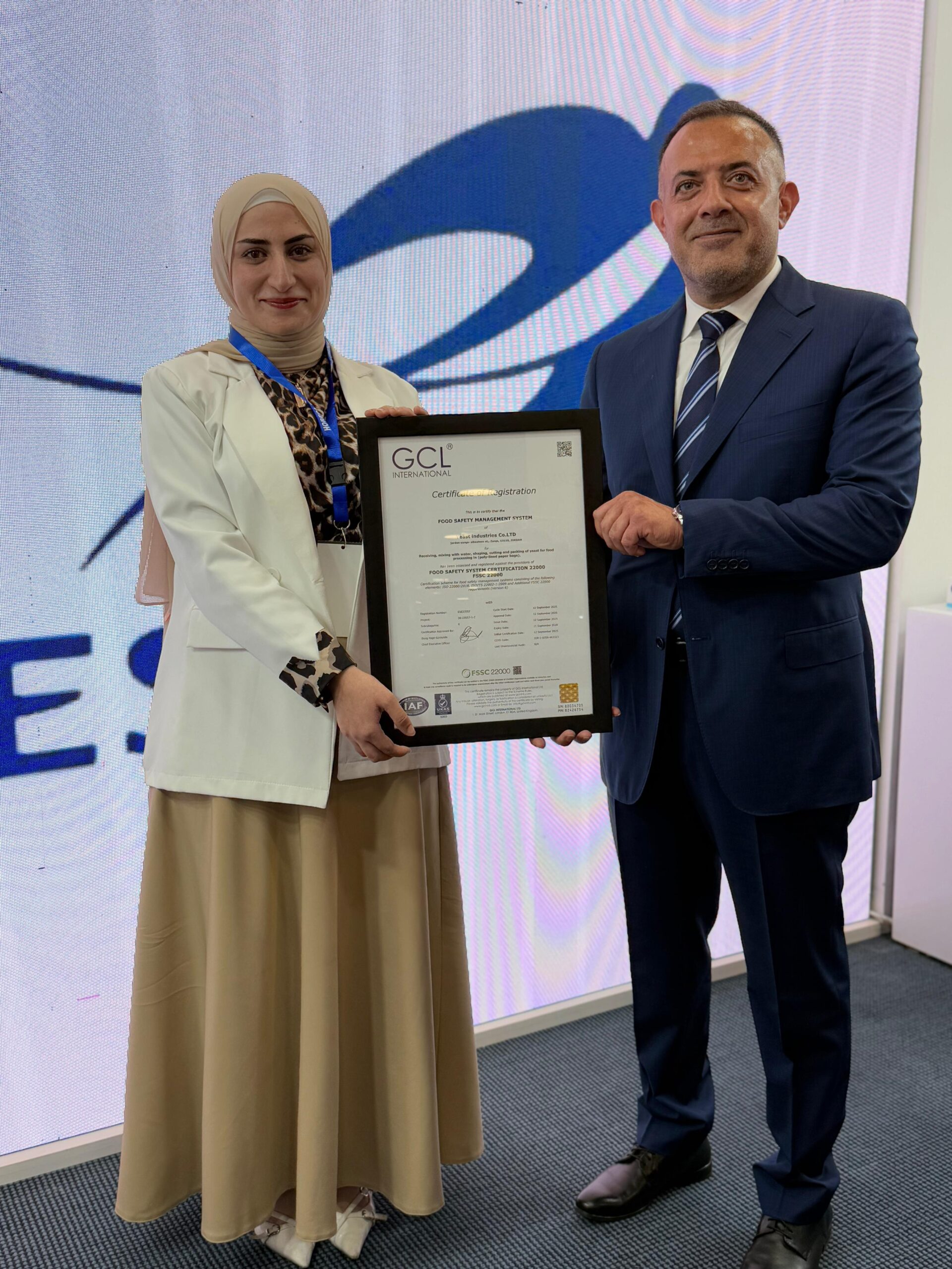 We are proud to announce that Lesaffre Jordan has officially obtained the FSSC 22000 certification — a global recognition in food safety and quality.
